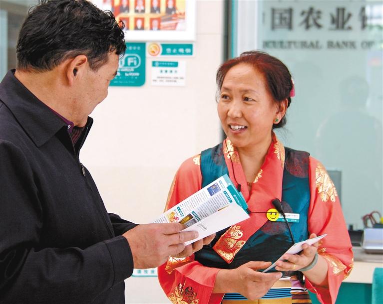 圖為農(nóng)行山南分行員工向客戶宣傳普及金融知識(shí)。