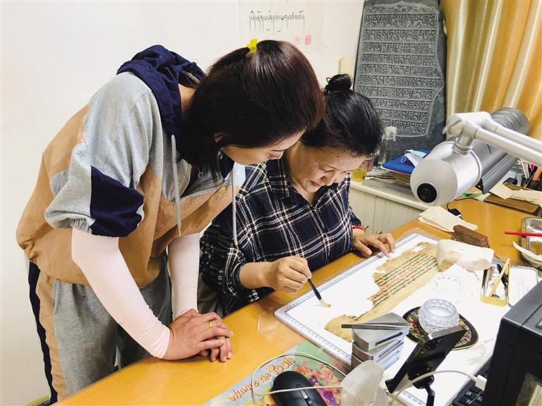 2015年自治區(qū)古籍修復(fù)中心成立以來,在國家圖書館和云南省圖書館等專業(yè)修復(fù)中心接受培訓(xùn)實踐的修復(fù)人員積極投入到藏文古籍修復(fù)工作中,相繼完成了拉薩市墨竹工卡縣芒熱寺破損古籍的修復(fù)任務(wù),修復(fù)古籍文獻共248葉,拍攝建檔496幅圖片,并把這部分完成修復(fù)的古籍文獻同目錄按正規(guī)程序移交給寺廟。完成了對山南市隆子縣加玉鄉(xiāng)強慶村白嘎寺的237函、3萬多葉的珍貴古籍文獻的整理、建檔和拍攝書影等工作。同時啟動了7000多葉破損古籍的修復(fù)工作,截至目前已完成4420葉破損古籍的修復(fù),為進一步做好傳統(tǒng)古籍文獻的再利用和原生性保護給予了有力保障。