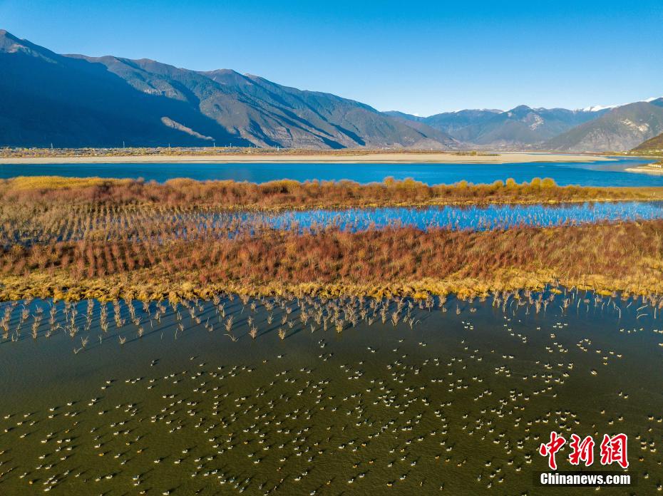 11月19日,西藏林芝雅尼國家濕地公園內(nèi)成群的斑頭雁。 董志雄 攝