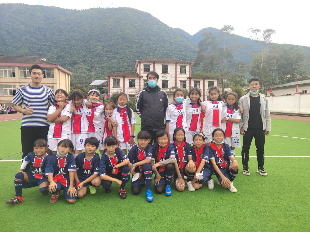 西藏墨脫縣完全小學陽光女子足球隊在一次比賽后合影留念(10月28日攝)。新華社發(fā)(孫思洋 攝)