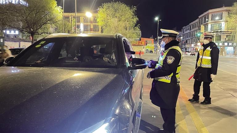 拉薩冬日的夜晚寒風(fēng)凜冽。夜色中,一輛輛汽車有序通行,街道又恢復(fù)了往日的熱鬧。當(dāng)天晚上9時(shí)許,記者跟隨拉薩市公安局交警支隊(duì)執(zhí)法監(jiān)督大隊(duì)民警前往江蘇大道,城南大隊(duì)的民警已經(jīng)設(shè)置好路障、標(biāo)牌,正在對(duì)過(guò)往車輛逐一進(jìn)行詳細(xì)排查?!澳?,請(qǐng)出示駕照?!薄澳茫?qǐng)吹氣?!痹诿窬闹笓]下,車輛有序通過(guò)檢查點(diǎn)。市民扎西多吉駕車經(jīng)過(guò)檢查點(diǎn)后告訴記者,在這么冷的天氣里,交警依然堅(jiān)守在路面上,確實(shí)令人敬佩,應(yīng)該為他們點(diǎn)贊?!拔視?huì)牢記‘開車不喝酒,喝酒不開車’,也會(huì)自覺遵守交通法律法規(guī),文明出行?!痹鞫嗉f(shuō)。