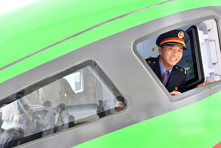 西藏第一代藏族復(fù)興號(hào)司機(jī)斯朗旺扎。(2021年6月21日攝)