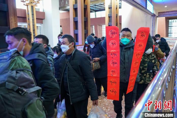 在候車廳,旦增旺久一家獲贈(zèng)了藏語春聯(lián),他介紹,自己是拉薩堆龍德慶區(qū)人,此次是乘火車前往上海觀光旅游?!懊磕甓煳覀兌紩?huì)去其他省區(qū)旅游,云南、四川,還有江西這些我們都去過了,今年先去上海,再去廣東,計(jì)劃趕在藏歷新年前回到拉薩過年?!?/p>