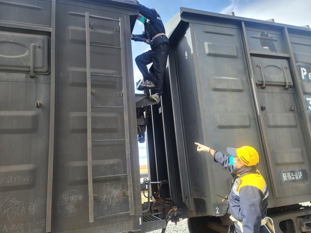 平均海拔超過(guò)4500米的西藏那曲市色尼區(qū)剛下完一場(chǎng)大雪,寒風(fēng)呼嘯。重復(fù)爬車下車,彎腰摘接風(fēng)管,大聲準(zhǔn)確喊出聯(lián)控用語(yǔ),緊接著撤除車列的防溜措施,青藏鐵路那曲火車站調(diào)車長(zhǎng)達(dá)瓦次仁忙完一組調(diào)車作業(yè)后,嘴唇發(fā)紫、臉頰通紅,需要馬上吸氧才能緩過(guò)勁。