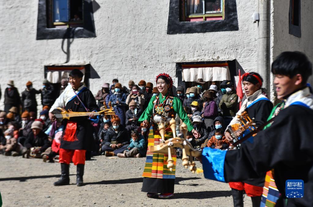 西藏日喀則市芒普鄉(xiāng)普村文藝演出隊在表演(1月21日攝)。新華社記者 晉美多吉 攝