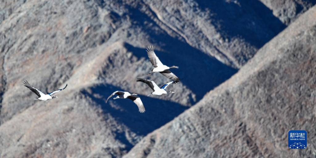 在西藏雅魯藏布江中游河谷黑頸鶴國(guó)家級(jí)自然保護(hù)區(qū)日喀則市拉孜縣越冬的黑頸鶴(1月19日攝)。新華社記者 晉美多吉 攝