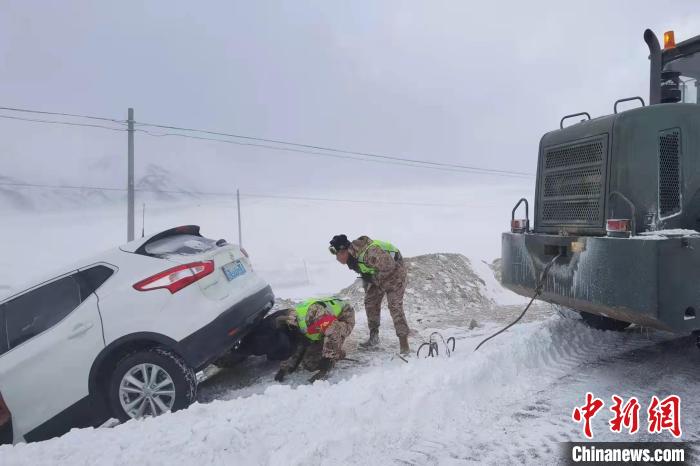 20日,西藏阿里地區(qū)普蘭縣境內(nèi)持續(xù)降雪,截止到20日15時許,564國道K065-K102段路面積雪平均厚度約5厘米,約1公里風(fēng)積雪路段積雪厚度達(dá)50厘米,道路通行受阻,多臺車輛被困。