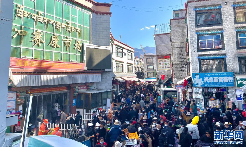 拉薩沖賽康市場(chǎng)前來購置年貨的各族群眾和各地游客(2023年1月30日 攝)。(高嵩 攝)