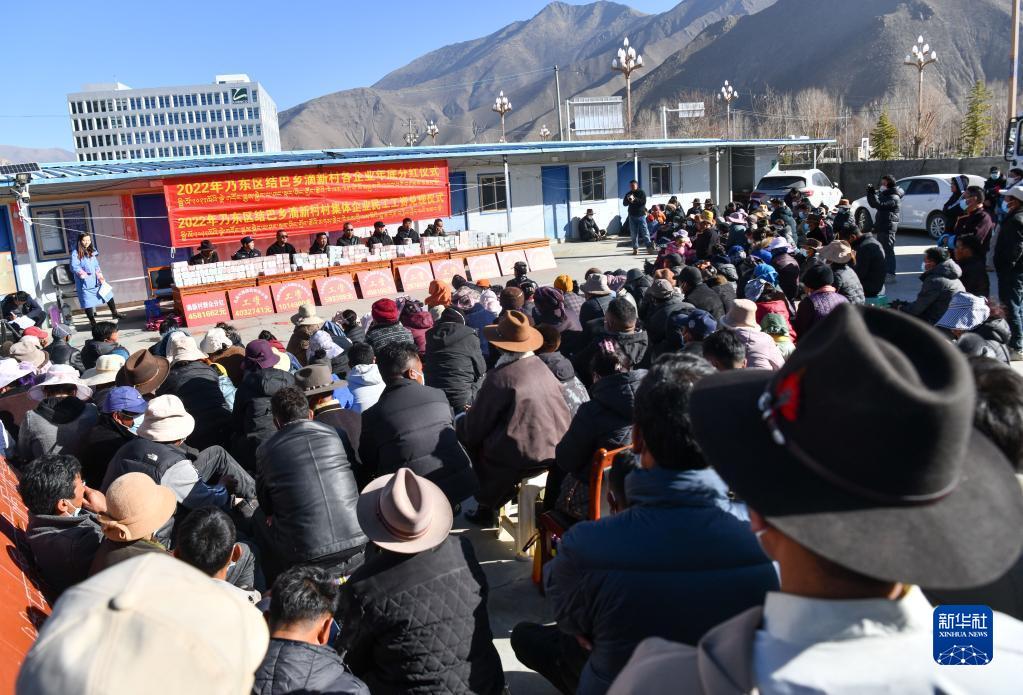 近日,西藏山南市乃東區(qū)滴新村舉行2022年產(chǎn)業(yè)分紅儀式。當(dāng)日,村委會(huì)院子里坐滿了前來領(lǐng)取分紅的村民。