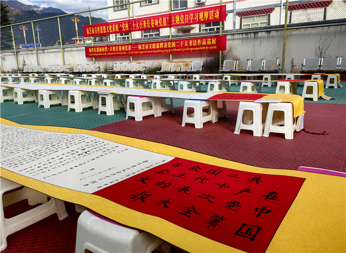 創(chuàng)新載體,全方位宣傳。林芝市統(tǒng)籌各類宣傳資源,線上線下同頻共振,全方位、多角度、寬領(lǐng)域、深層次宣傳黨的二十大精神和區(qū)黨委十屆三次全會(huì)、市委二屆三次全會(huì)精神,營造學(xué)習(xí)宣傳的濃厚氛圍。一是新聞宣傳強(qiáng)信心。林芝報(bào)、林芝廣播電視臺(tái)、西藏林芝網(wǎng)、微林芝等市屬主流媒體紛紛開設(shè)《學(xué)習(xí)貫徹黨的二十大》《新時(shí)代新征程新偉業(yè)》等多個(gè)專題專欄,持續(xù)推出學(xué)習(xí)貫徹黨的二十大精神相關(guān)報(bào)道。截至目前,共刊播《基層宣講員讓黨的二十大精神翩翩飛入百姓家》《軍民共話美好未來 繪就美麗鄉(xiāng)村新畫卷》等相關(guān)新聞2500余條。二是社會(huì)面宣傳筑同心。采取“屏、板、欄、幅”立體宣傳方式,在全市各級(jí)黨政機(jī)關(guān)和企事業(yè)單位大門LED電子顯示屏以及市、縣城區(qū)主要街道、跨街龍門、出租車頂燈、汽車站等公共場(chǎng)所的宣傳媒介上滾動(dòng)播放自治區(qū)統(tǒng)一印發(fā)的宣傳標(biāo)語1.2萬余條次,更新懸掛國旗3.5萬余面,制作發(fā)放宣傳海報(bào)1.5萬張、宣傳品2500余個(gè),形成抬頭可見、隨處可學(xué)的濃厚社會(huì)氛圍。察隅縣上察隅鎮(zhèn)遲巴村村“兩委”和駐村工作隊(duì)用彩色粉筆繪制黨的二十大、“新黨章”等主題黑板報(bào),用畫筆向村民傳遞黨的最新政策,深受群眾喜愛。三是網(wǎng)絡(luò)宣傳聚民心。充分發(fā)揮新媒體平臺(tái)宣傳形式豐富的特點(diǎn),持續(xù)推送重磅報(bào)道和重點(diǎn)文章,策劃打造一批融媒體產(chǎn)品,在全網(wǎng)迅速興起學(xué)習(xí)宣傳貫徹會(huì)議精神熱潮。市委網(wǎng)信辦策劃制作短視頻《學(xué)習(xí)黨的二十大精神 談心得感悟》、“林芝融媒”抖音號(hào)推出《二十大時(shí)光》微視頻,將鏡頭對(duì)準(zhǔn)二十大代表、基層黨員群眾,展現(xiàn)全市干部群眾積極向上的良好風(fēng)貌?!鞍鸵巳诿健倍兑籼?hào)推出“黨的二十大精神快問快答”系列活動(dòng),線上線下聯(lián)動(dòng)學(xué)習(xí),推動(dòng)黨的二十大精神入腦入心。“察隅融媒”抖音號(hào)策劃開展《鄉(xiāng)村振興正當(dāng)時(shí)》黨的二十大主題抖音直播活動(dòng),通過網(wǎng)絡(luò)直觀展現(xiàn)新時(shí)代察隅新農(nóng)村、新氣象、新希望。目前已開展7場(chǎng)直播活動(dòng),觀看人數(shù)達(dá)10萬人次。四是文藝宣傳暖人心。充分發(fā)揮市、縣(區(qū))、村三級(jí)文藝文化團(tuán)體作用,組織開展“深入生活 扎根人民”“幸福不忘共產(chǎn)黨 陽光路上夢(mèng)起航”等各類文藝文化活動(dòng),精心打造文藝精品力作,用文藝活動(dòng)、文藝作品溫暖人心。截至目前,各級(jí)文藝演出隊(duì)開展文藝匯演293場(chǎng)次,參與人數(shù)4.2萬余人次;創(chuàng)作推出音樂作品《沐浴幸?!?、攝影作品《我和國旗》、書法美術(shù)作品《建功新時(shí)代 奮進(jìn)新征程》、文學(xué)作品《黨的光輝照萬家》等文藝作品300余個(gè)。波密縣完全小學(xué)在崗云杉林景區(qū)組織開展“學(xué)習(xí)黨的二十大,爭(zhēng)做好少年”采風(fēng)寫生活動(dòng),學(xué)生們以文藝創(chuàng)作的形式學(xué)習(xí)黨的二十大精神,并將學(xué)習(xí)成果轉(zhuǎn)化到作品中。市民族藝術(shù)團(tuán)以深入挖掘歷史文化、講好紅色故事為主題,籌拍了微電影《立定村屹立的紅旗》。市文聯(lián)書法美術(shù)家協(xié)會(huì)理事茹輝春同志,在黨的二十大召開后用行、楷兩種書法形式撰寫了黨的二十大報(bào)告全文書卷,書卷共有八卷,每卷長(zhǎng)30米。市委宣傳部、市文廣局、市文聯(lián)組織市書法美術(shù)家協(xié)會(huì)開展“禮贊二十大·送福進(jìn)萬家”林芝市2023年新春書法美術(shù)家“深入生活 扎根人民”送祝福和采風(fēng)活動(dòng),共開展送春聯(lián)活動(dòng)15場(chǎng)次,送出對(duì)聯(lián)、福字、掛軸、繪畫等作品8950幅(對(duì)),服務(wù)群眾6700余人次。