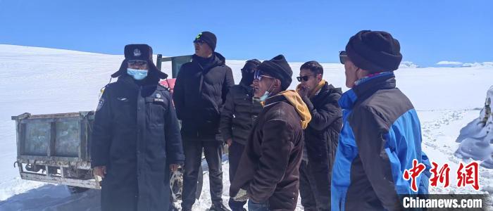 去年10月份,一場(chǎng)突如其來的大雪困住了牧場(chǎng)上的2000多只羊。為了牧場(chǎng)轉(zhuǎn)場(chǎng)順利,這群移民警察聯(lián)合當(dāng)?shù)卣ぷ魅藛T還有老百姓深入到牧場(chǎng)腹地。洛桑曲扎說:“白天進(jìn)去,到了第二天才出來。當(dāng)時(shí)邊鏟雪邊往里走,放牧點(diǎn)的積雪深到膝蓋。把羊群轉(zhuǎn)出去后,我們的車陷在了里面,大家穿著大衣在車上僅吃了泡面挺過了一晚上?!?除了這些,他記憶里,還有數(shù)不清的救援。