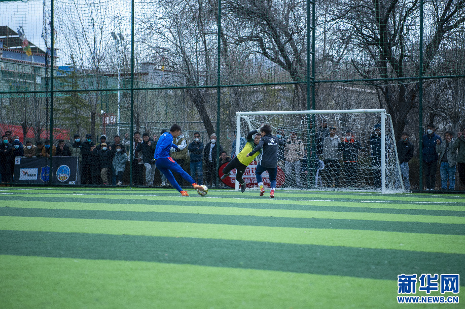 2月14日,巔炯邁瓦隊(duì)球員西繞加措在門(mén)前抽射。 新華網(wǎng) 旦增努布 攝