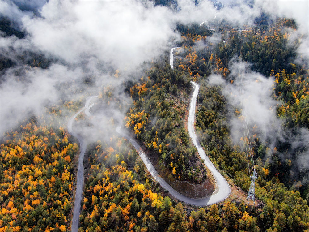 2020年11月5日拍攝的派墨公路米林段一景(無人機照片)。新華社發(fā)(董志雄 攝)