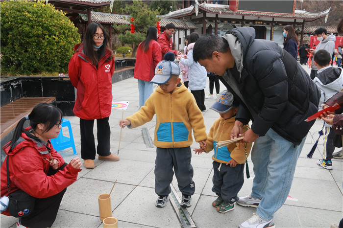 藏歷新年游園活動由趣味游戲、燈謎競猜、我與2023同框、新年微心愿、樂頌祖國等部分組成。趣味游戲環(huán)節(jié),設(shè)置了8個游戲點,每個點位的參與人員自覺排起長隊,游戲項目均老少皆宜,不同民族的市民扶老攜幼“全家總動員”,團結(jié)合作,樂在其中,拉近了親朋之間的距離。燈謎競猜環(huán)節(jié),結(jié)合黨史、新中國史和百姓生活,懸掛800個謎面,現(xiàn)場市民們興致昂揚,發(fā)揮自己的聰明才智揭下謎底,兌換獎品?!拔遗c2023同框”合影活動中,大家臉上洋溢著幸福的笑容,站在新時代、謀求新作為?!靶履晡⑿脑浮痹S愿活動現(xiàn)場始終洋溢著幸福、快樂、愉悅的氣息,大家紛紛書寫下自己的愿望,表達(dá)自己的理想追求和奮斗目標(biāo)。