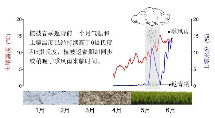 羅天祥指出,本項(xiàng)研究通過在青藏高原中部念青唐古拉山北坡的西藏納木錯(cuò)高寒湖泊與環(huán)境國家野外科學(xué)觀測研究站建立紅外增溫和自動(dòng)增雨控制實(shí)驗(yàn)平臺(tái),研究團(tuán)隊(duì)對2013-2014年紫花針茅、大花嵩草、釘柱委陵菜3個(gè)優(yōu)勢物種返青期與枯黃期物候進(jìn)行監(jiān)測,并同步記錄氣溫、降水、土壤溫度和土壤水分,解析了增溫2攝氏度、增雨15%和30%對高寒草原-草甸過渡帶優(yōu)勢種物候變化的影響,研究結(jié)果明確顯示,降雨增加導(dǎo)致青藏高原高寒草地植被返青提前、枯黃推遲,而與增溫基本無關(guān)。