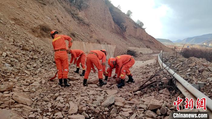 圖為昌都市卡若區(qū)森林消防中隊“火焰藍”志愿服務(wù)隊清理滑坡路段。 昌都市卡若區(qū)森林消防中隊供圖