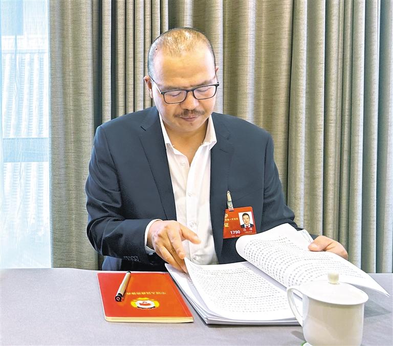 圖為3月5日,達(dá)珞參加少數(shù)民族界小組討論。