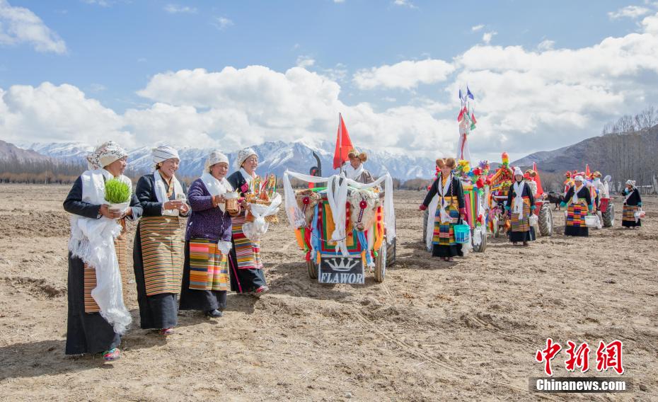 圖為拉薩市林周縣朱加村,村民穿著節(jié)日盛裝舉行傳統(tǒng)春耕儀式。林周融媒 供圖
