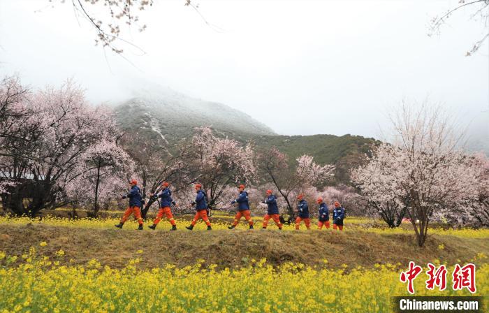林芝市森林消防支隊指戰(zhàn)員穿梭在桃林中,對景區(qū)重點部位和消防設(shè)施進行消防巡查,及時應(yīng)對可能發(fā)生的突發(fā)事件,做好滅火救援各項準(zhǔn)備工作。