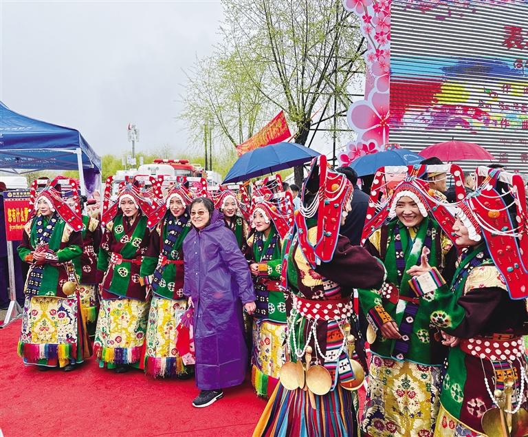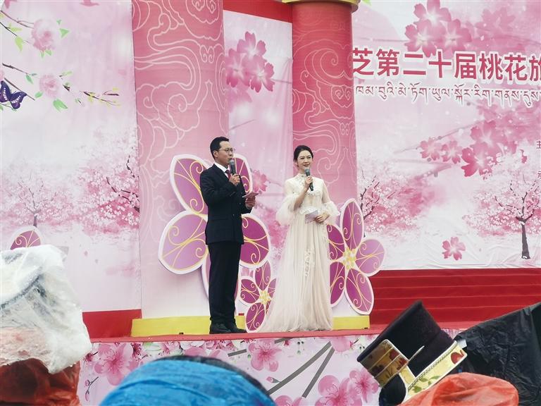 開幕式現(xiàn)場雨雪霏霏,卻擋不住市民和游客欣賞桃花、探尋春色的熱情。隨著音樂的響起,開場舞《春回大地》拉開了盛會序幕。由藏戲、舞蹈、歌曲、T臺秀等文藝節(jié)目組成的林芝歡騰頌盛世、盛世奮進迎花開、花開高原啟新程三個篇章,不僅讓現(xiàn)場觀眾大飽眼福,也為雪山桃花環(huán)抱的林芝增添了與眾不同的人文意境。