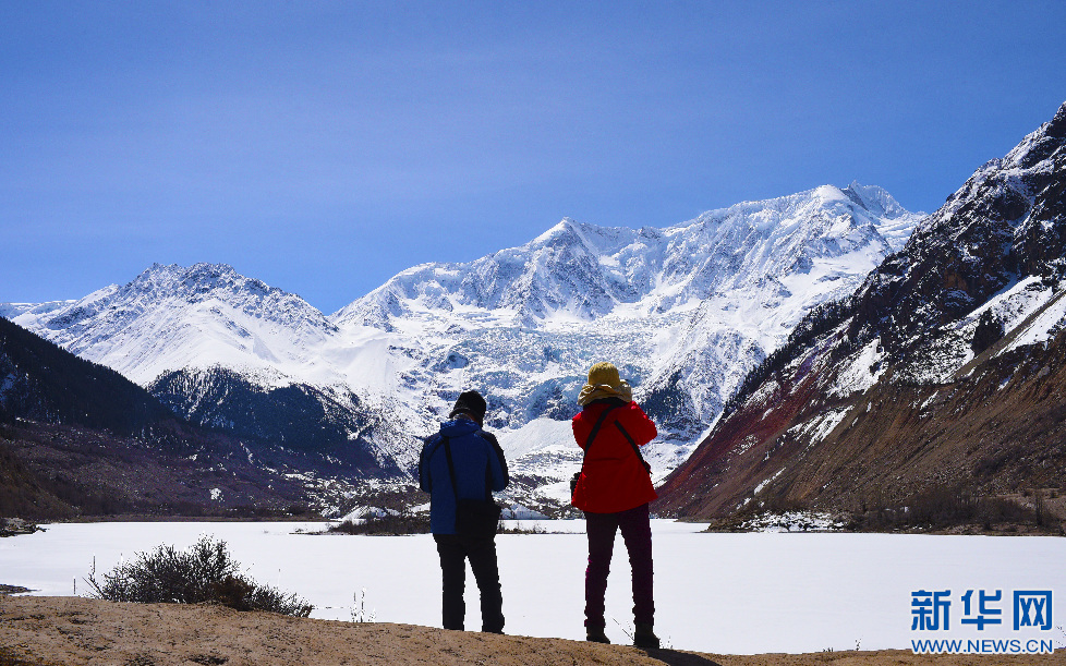 游客在米堆冰川觀景臺附近拍攝(3月25日攝)。 新華網 達次 攝