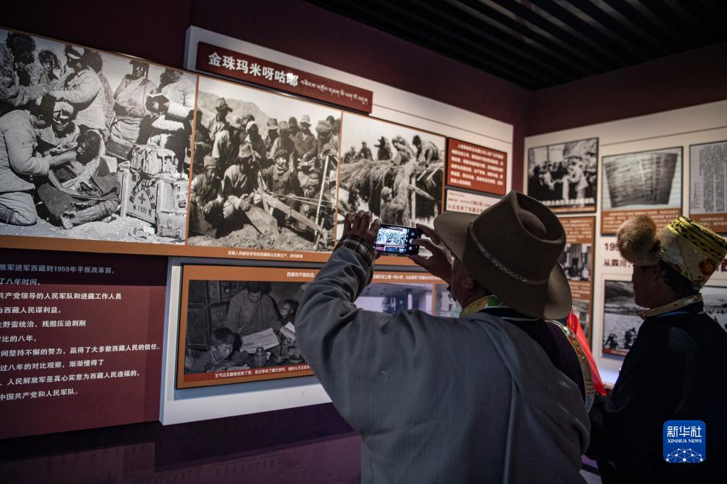 3月28日,觀眾在重新開放的西藏民主改革第一村陳列館參觀。新華社記者 孫非 攝