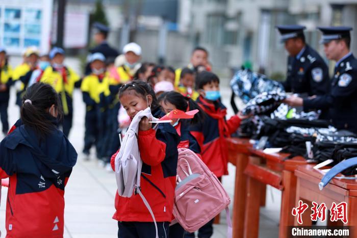 移民管理警察為學(xué)生發(fā)放書(shū)包,鼓勵(lì)學(xué)生好好學(xué)習(xí),將來(lái)成為棟梁之材?!⌒じ毁F 攝
