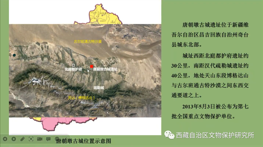 唐朝墩古城遺址位于新疆昌吉州奇臺縣城東北部,東鄰水磨河,西、南、北三面緊鄰縣城居民區(qū)。城址西距唐北庭都護(hù)府遺址約30公里,南距漢代疏勒城遺址約40公里,地處天山東段博格達(dá)山與古爾班通古特沙漠之間東西交通要道之上。2013年公布為第七批全國重點文物保護(hù)單位。唐朝墩古城始建于公元7世紀(jì)上半葉的唐代早期,至14世紀(jì)逐漸廢棄,主要歷經(jīng)了唐、高昌回鶻和蒙元三個時期。2018~2022年,中國人民大學(xué)北方民族考古研究所與新疆文物考古研究所聯(lián)合對唐朝墩古城遺址開展了連續(xù)5年的考古發(fā)掘,在基本厘清城址布局結(jié)構(gòu)和年代序列的基礎(chǔ)上,清理出唐代經(jīng)高昌回鶻時期至元代的各類遺址,包括帶有圍墻的唐代院落遺址、羅馬式浴場遺址、佛寺遺址、景教(東方敘利亞基督教)寺院遺址等。出土了大量的不同時期遺物,印證了天山北麓自唐代至元代多民族融合、多宗教共存、多文化兼容的歷史事實,更為研究和闡釋絲綢之路上東西文化交流、多民族融合的大一統(tǒng)格局形成和發(fā)展歷程等問題,提供了生動而堅實的實物材料。此次發(fā)現(xiàn)為我們探討公元10~13世紀(jì)天山北麓的城市生活景象提供了資料與依據(jù),也為我們透物見人,從社會史的角度考察當(dāng)?shù)囟嗝褡宕笠唤y(tǒng)格局的形成提供了重要線索。