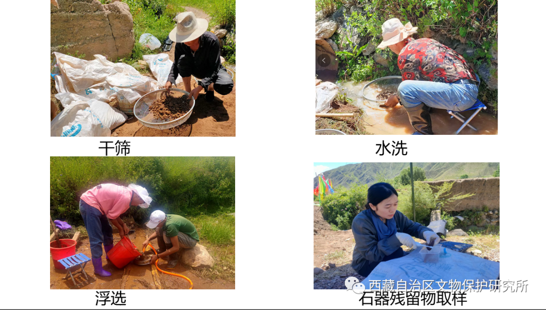 2022年,國家文物局考古研究中心聯(lián)合西藏文物保護(hù)研究所、昌都市文物保護(hù)研究所對遺址進(jìn)行了發(fā)掘,此次發(fā)掘采用傳統(tǒng)考古與多學(xué)科相結(jié)合的方式,發(fā)掘面積計200平方米。發(fā)現(xiàn)主要遺跡有房址2座、灰坑2座、護(hù)坎1條、石墻1條,出土數(shù)十件石器、陶器、骨器等標(biāo)本以及一定數(shù)量的動植物樣品。石器分打制石器和磨制石器兩種,打制石器有刮削器、砍砸器、砸擊器、石杵以及數(shù)量較多的細(xì)石器,包括石核、石葉、邊刮器、端刮器、凹缺刮器等;磨制石器有雙孔石刀、單孔石刀、石環(huán)、石璜、璋形器等;骨器有骨錐、鋸齒狀骨器等;陶器有花邊口沿罐、高領(lǐng)鼓腹罐、陶缽等;紋飾有繩紋、籃紋、斜線三角紋、附加堆紋、剔刺紋、指甲紋等,有數(shù)量較少的磨光陶片。夾砂陶占絕大多數(shù),只有極少量的泥質(zhì)陶。陶色以紅褐陶為主,有少量的灰陶、灰褐陶、灰黑陶。動物標(biāo)本種類包括哺乳類、鳥類。哺乳類骨骼占絕大多數(shù),其中又以偶蹄類的牛科與鹿科動物為主,可辨種類有羊、獐子、喜馬拉雅旱獺等。另有少量嚙齒類動物骨骼標(biāo)本。植物種子數(shù)量普遍較少,目前發(fā)現(xiàn)了粟、黍兩種農(nóng)作物,粟的數(shù)量和出土概率都高于黍??墒秤霉麑嵎譃樾雍伺c桃核兩類。
