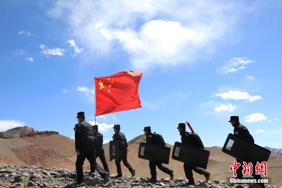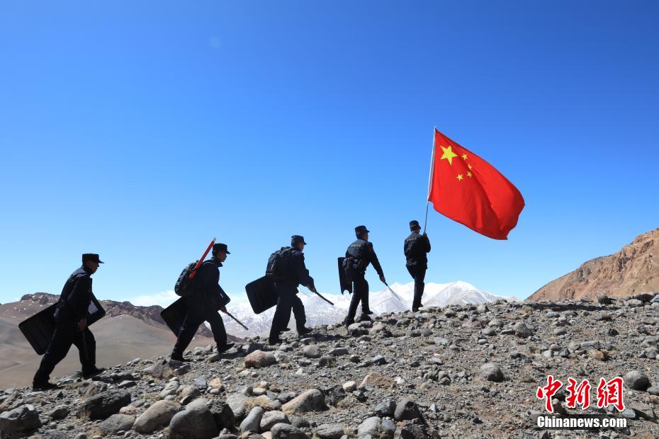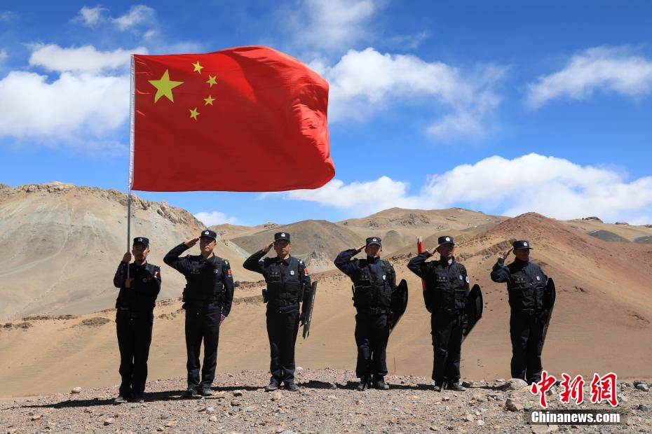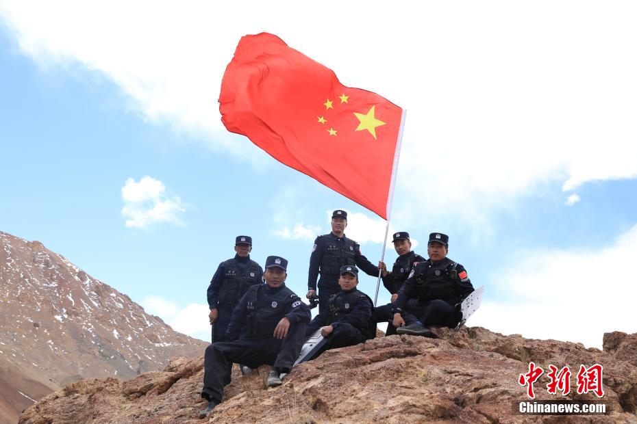 近日,西藏阿里邊境管理支隊(duì)扎西崗邊境派出所組織民警和護(hù)邊員通過乘車巡邏和徒步巡邏相結(jié)合的方式,前往海拔4800米的“守邊固邊第一村”——典角村古格川執(zhí)勤點(diǎn)巡邏,經(jīng)過一個小時的車巡和一個小時的徒步巡邏,民警到達(dá)了古格川執(zhí)勤點(diǎn)。通過巡邏,及時掌握了邊境一線情況,確保了邊境轄區(qū)安全穩(wěn)定。圖為民警與國旗合影。郭遠(yuǎn)敬 攝