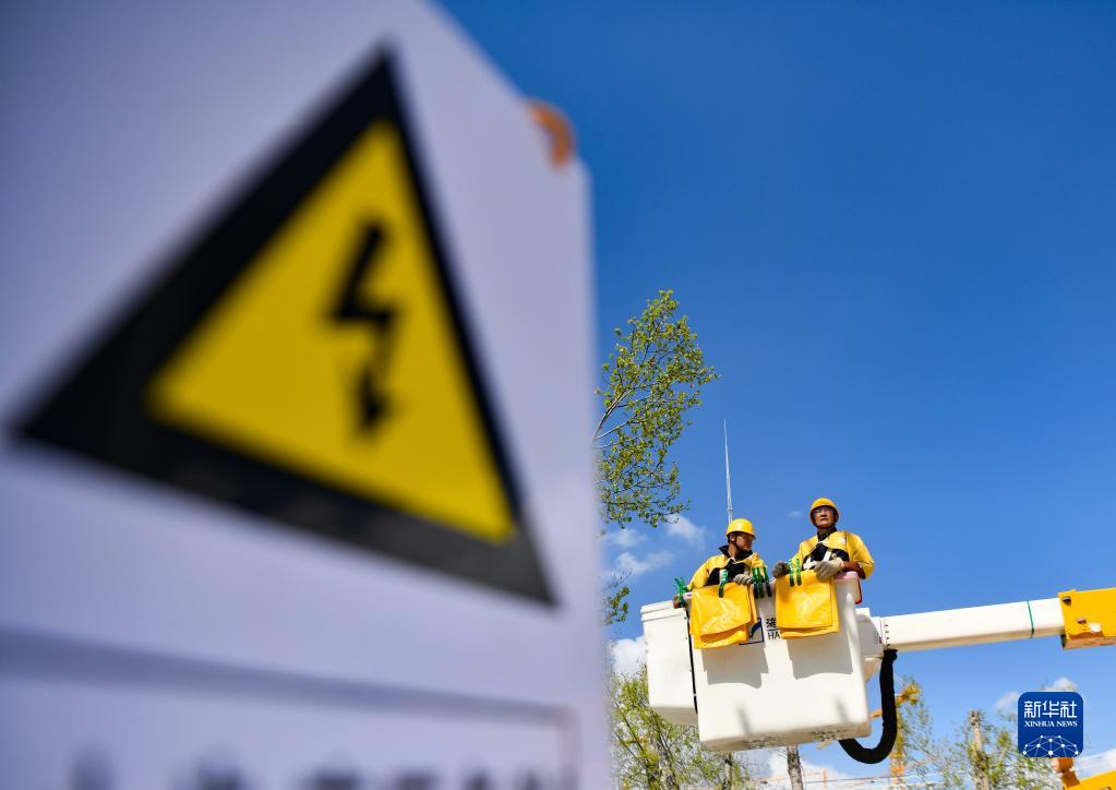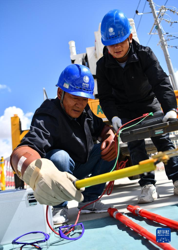 4月26日,扎西尼瑪(左)在進行絕緣電阻檢測。新華社記者 劉洲鵬 攝