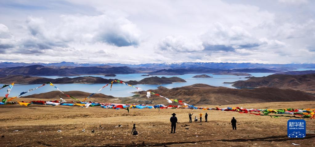 游客在羊卓雍錯魯日拉欣賞美景(5月1日攝,手機照片)。新華社記者 沈虹冰 攝