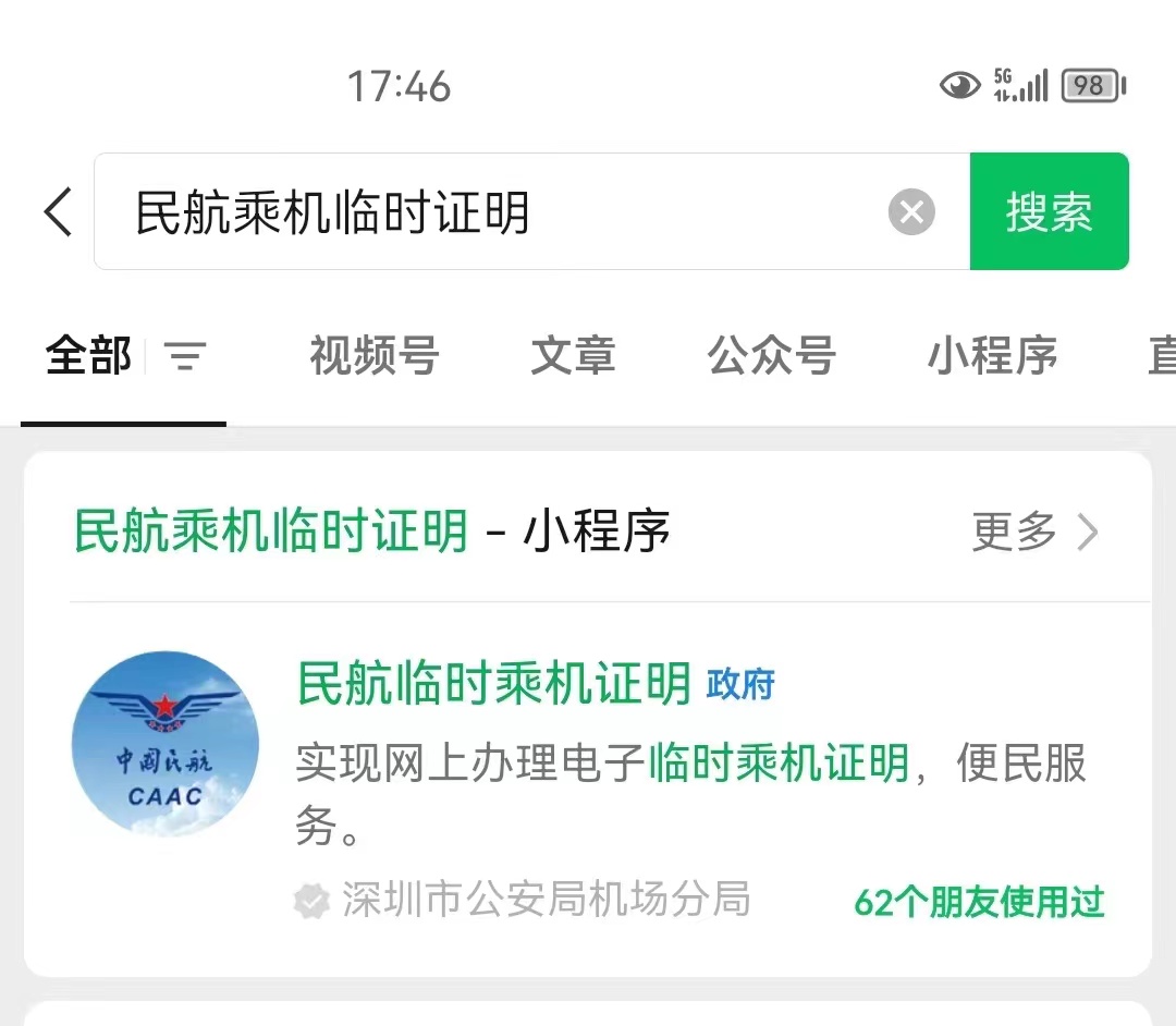 3、請您出示與購票時(shí)一致的有效證件辦理乘機(jī)手續(xù),以免因證件不符耽誤行程。如身份證過期或丟失,您可以在微信小程序和支付寶頁面搜索“民航臨時(shí)乘機(jī)證明”小程序進(jìn)行辦理。