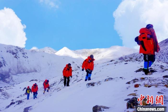 國家高山救援拉薩大隊隊員向海拔6010米洛堆峰進發(fā)?!〖?攝