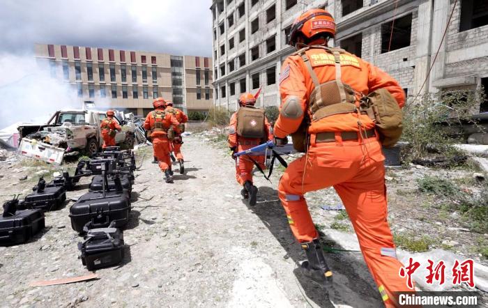 圖為演練中救援現(xiàn)場。西繞拉翁 攝