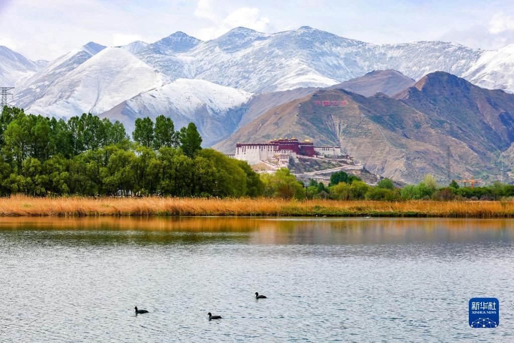 這是在拉魯濕地拍攝的拉薩風(fēng)光,蔥蘢的樹木點綴在城市中,與山色相映成趣(5月12日攝)。新華社記者 姜帆 攝