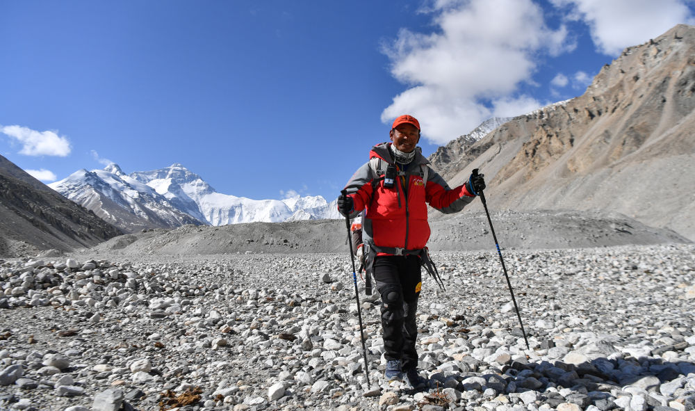 這是珠峰科考登頂隊隊長扎西平措(5月18日攝)。新華社記者 晉美多吉 攝