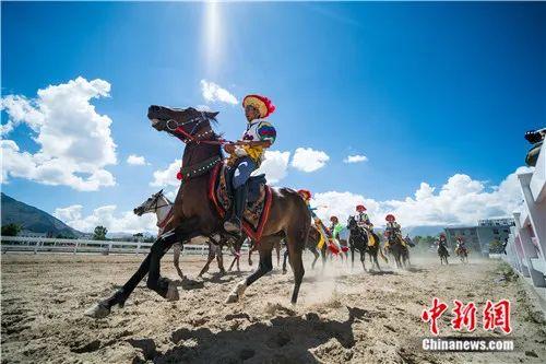 2018年8月,西藏傳統(tǒng)體育項目——馬術表演亮相雪頓節(jié),在拉薩賽馬場開幕。何蓬磊 攝