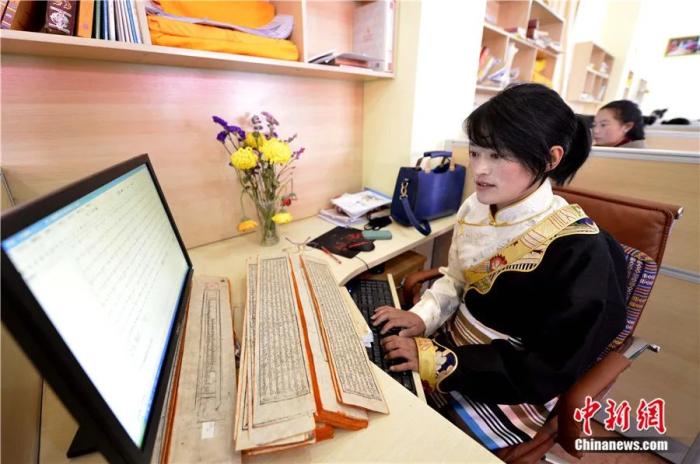 2014年2月,西藏自治區(qū)古籍保護(hù)中心色昭辦公室的工作人員扎西央宗正在進(jìn)行藏文古籍錄入。李林 攝