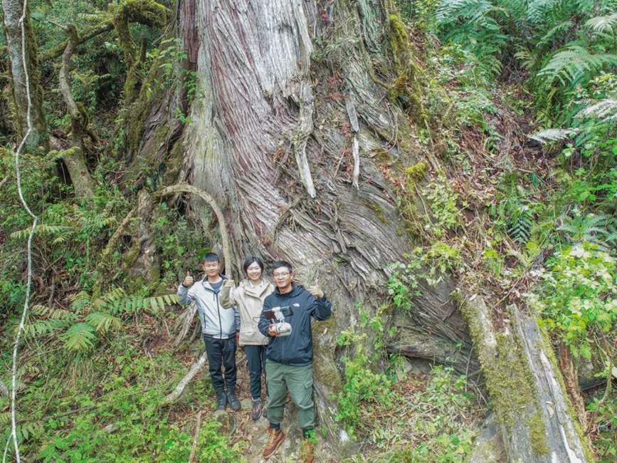 圖為測(cè)量人員站在西藏柏木最高樹下合照。