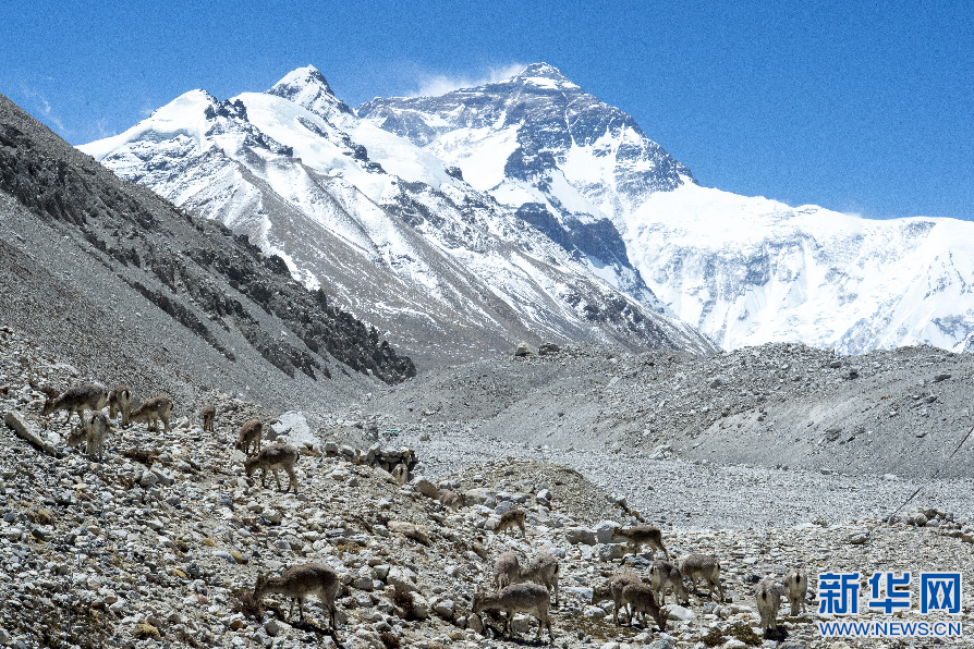 珠穆朗瑪峰腳下棲息的巖羊。新華網(wǎng) 旦增努布 攝