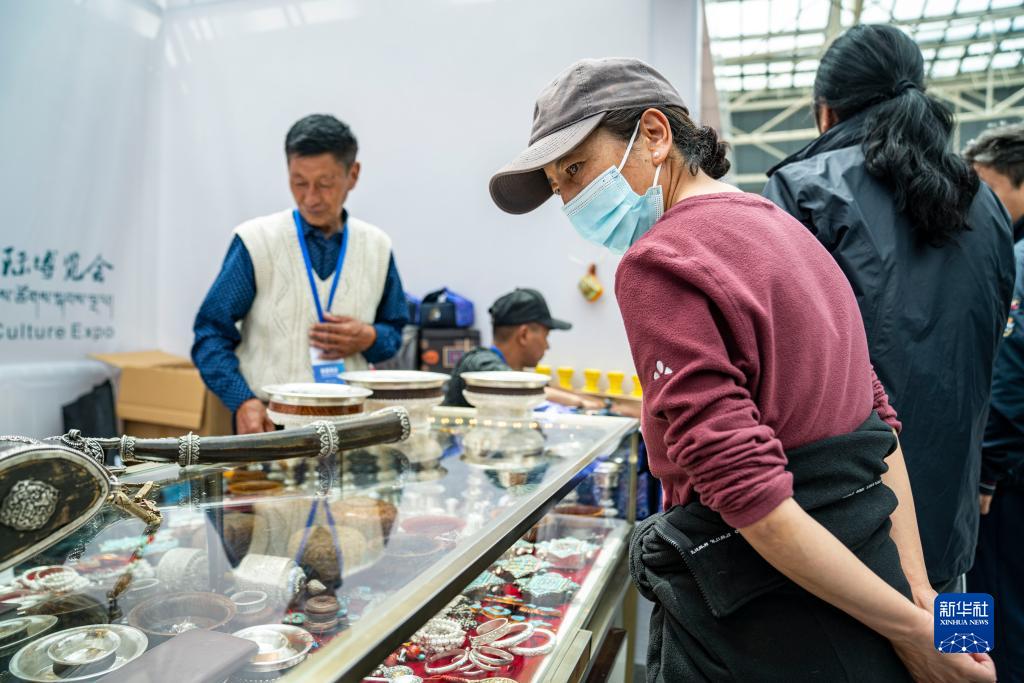 在藏博會(huì)上,消費(fèi)者觀看琳瑯滿目的西藏特產(chǎn)(6月17日攝)。新華社記者 張汝鋒 攝