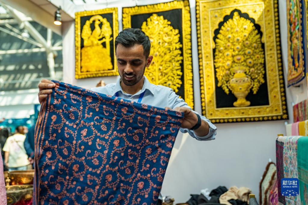 6月17日,桑托什正在整理展示自己的商品。新華社記者孫非 攝