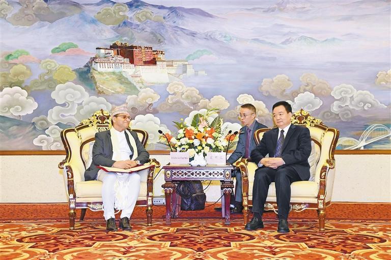 王君正指出,在中尼關(guān)系不斷深化的大背景下,雙方合作取得長足進(jìn)展,在互聯(lián)互通、經(jīng)貿(mào)合作、人文交流等領(lǐng)域成果斐然。開放的經(jīng)濟(jì)最有活力,開放的地區(qū)最具有競爭力,我們將認(rèn)真貫徹落實(shí)習(xí)近平主席訪尼重要成果和兩國領(lǐng)導(dǎo)人達(dá)成的重要共識(shí),積極執(zhí)行黨中央外交方針和對(duì)尼政策,發(fā)揮自身區(qū)位優(yōu)勢(shì),把西藏的發(fā)展開放同促進(jìn)中尼關(guān)系繁榮發(fā)展緊密結(jié)合起來,積極參與中尼高質(zhì)量共建“一帶一路”,在中尼航線、口岸建設(shè)、產(chǎn)業(yè)園區(qū)、基礎(chǔ)設(shè)施建設(shè)等領(lǐng)域與尼方加強(qiáng)溝通合作,構(gòu)建跨喜馬拉雅立體互聯(lián)互通網(wǎng)絡(luò),在加快構(gòu)建新發(fā)展格局、推動(dòng)高水平對(duì)外開放上邁出更大步伐,為中尼關(guān)系深入發(fā)展作出西藏貢獻(xiàn)。希望蒂米爾西納主席一行以參加第五屆藏博會(huì)為契機(jī),更加深入了解社會(huì)主義現(xiàn)代化新西藏的新成就新風(fēng)貌,領(lǐng)略雪域高原的獨(dú)特魅力,把一個(gè)更加繁榮、更加開放的中國西藏,全面、客觀、真實(shí)地介紹給尼泊爾民眾和國際社會(huì),讓世界更好地了解西藏、讓西藏更快地走向世界。