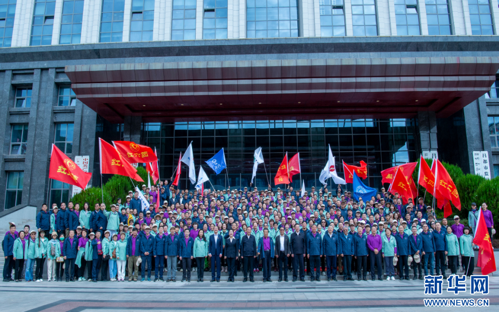 7月8日,來自北京200余家醫(yī)療單位的453位醫(yī)護人員和100余位愛心志愿者合影。新華網 旦增努布 攝