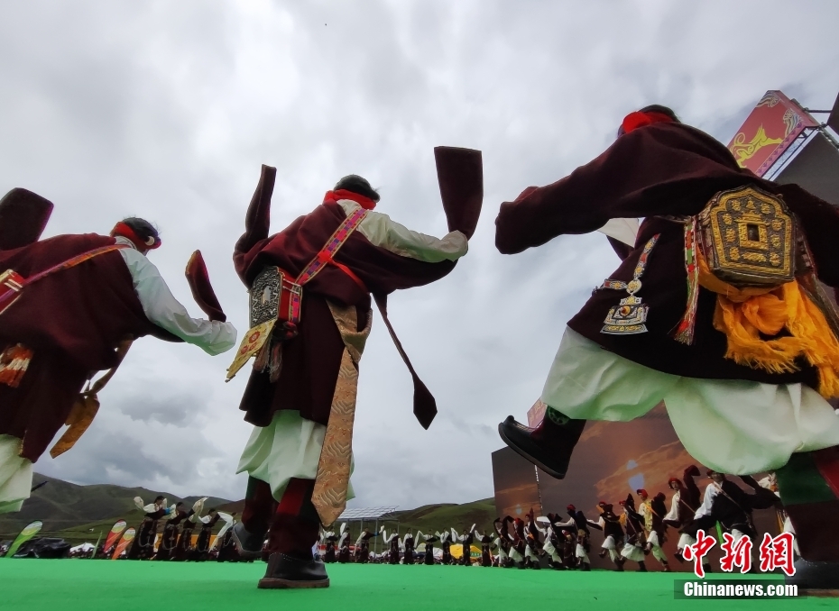 7月15日,西藏自治區(qū)昌都市貢覺縣阿旺綿羊文化商貿(mào)旅游節(jié)在當(dāng)?shù)嘏e行。當(dāng)?shù)孛癖娸d歌載舞歡迎各地游客。