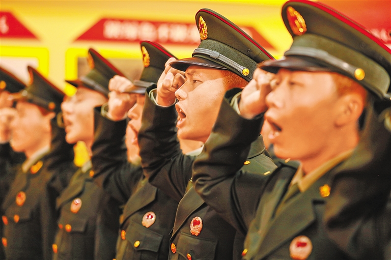 西藏軍區(qū)保障部某管線大隊組織新兵重溫入伍誓詞,激勵大家不忘初心、建功軍營。胡強(qiáng) 石建 劉雪峰 攝