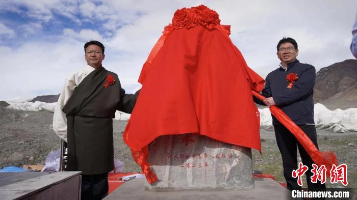 圖為那曲市委副書記、市長旦巴(圖左)和水利部水資源管理中心副處長張遠(yuǎn)東一同為“長江第一滴水”揭碑。拉巴卓瑪攝