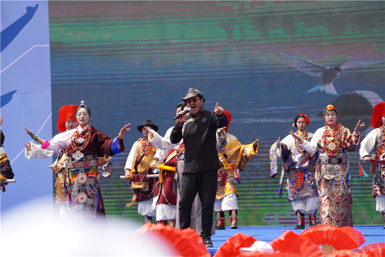 開幕式上,來自然烏鎮(zhèn)小學(xué)的200多名學(xué)生手持花傘,隨著音樂的節(jié)奏變換著各種復(fù)雜的隊(duì)型,精彩的表演令人賞心悅目;男女演員分別飾演十八軍戰(zhàn)士和小女孩,以時空對話的形式,演繹了八宿發(fā)展的歷史脈絡(luò)。開幕式還邀請了到著名藏族歌手亞東、扎西平措等前來助陣,歌聲穿透陽光,在然烏湖上空回蕩,為當(dāng)?shù)厝罕妿硪粓鲆暵犑⒀纭?nbsp;