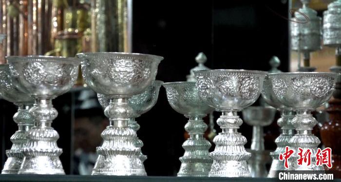 圖為扎西吉彩匠人打制的純銀酥油燈。貢桑拉姆 攝